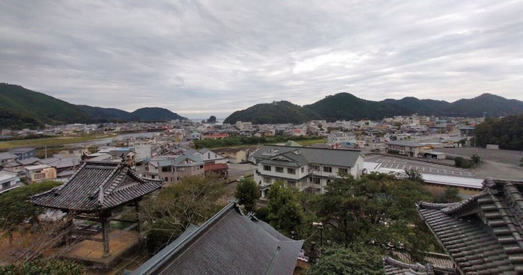 街の中にありながら、山の斜面に沿って伽藍が広がり、境内からは日和佐の街と海が見渡せる。参拝者も多く、遍路姿の人だけでなく、観光客の姿も目立ち、どこか開けた明るさがあった。